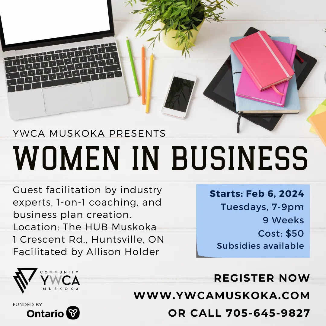 Register now online at https://www.ywcamuskoka.com/women-in-business-program