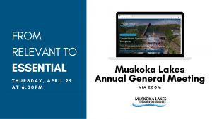 FROM RELEVANT TO ESSENTIAL: Join us April 29 online via Zoom for the Annual Meeting of the Muskoka Lakes Chamber of Commerce. This is an important meeting as Members will be asked to vote in their new Board and learn about what your Chamber accomplished and how we are supporting your organizations. All Chamber Members are asked to please RSVP. You are welcome to bring non Member guests. Please RSVP for them, include their company name (if applicable) and note they are a guest,. Non member can not vote on business items.