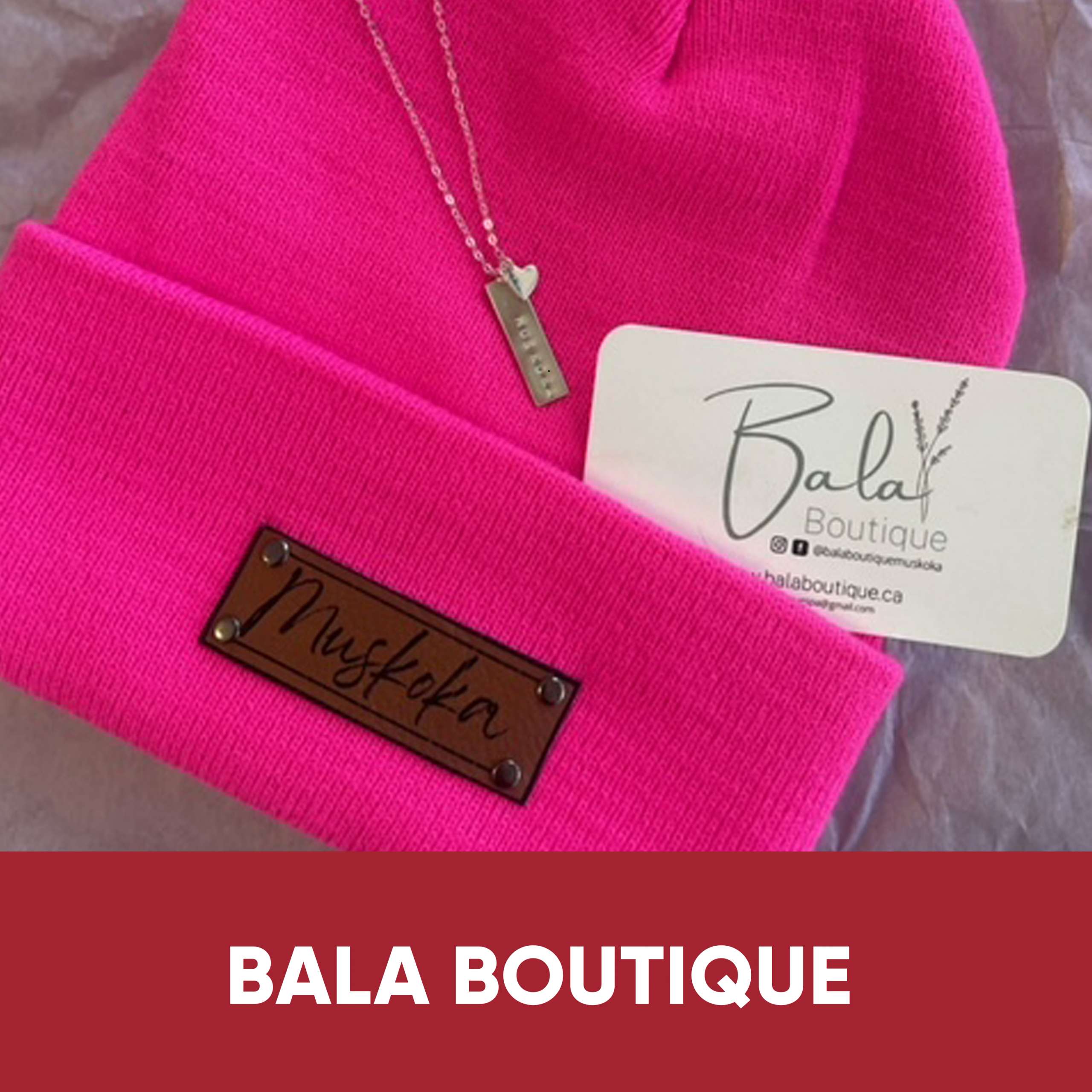 Muskoka toque and necklace from Bala Boutique