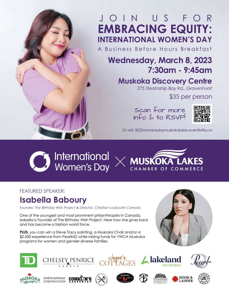 Start International Women’s Day (IWD2023) off right March 8 by having breakfast and embracing equity with difference-makers at the Muskoka Discovery Centre in Gravenhurst.
