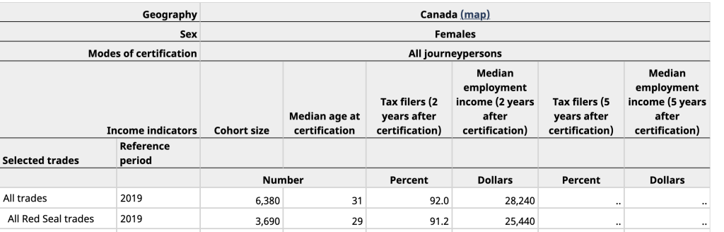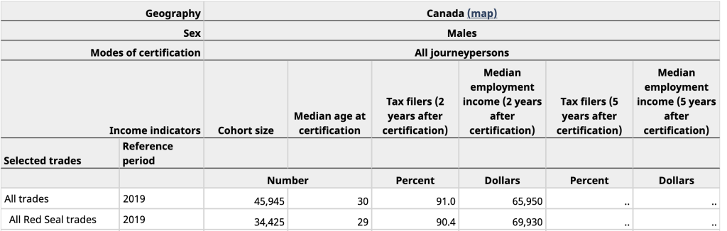 JOURNEYPERSON STATS – Most recent 2019 Statistics Canada Data