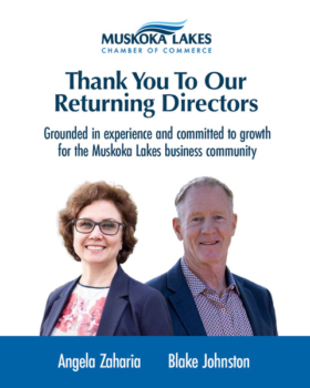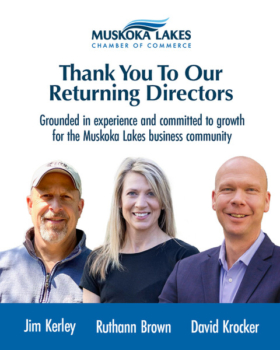 New Board Directors for the 2025-2027 term include Morgan Jennings, Windermere House; Maggie Wu, JW Marriott Muskoka, and Steven Smyth, CNIB Lake Joe.
