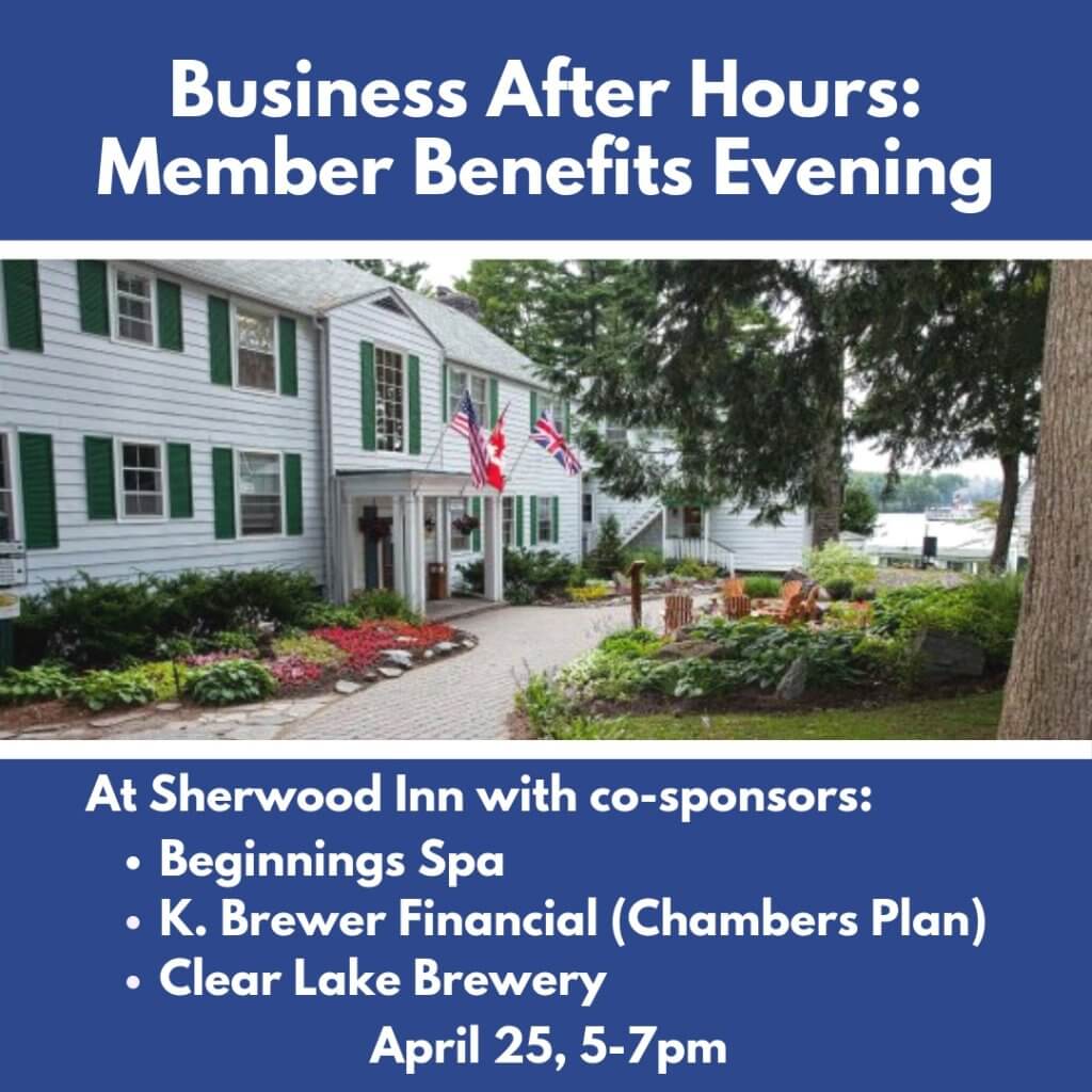 Learn about these benefit and more at our special Business After Hours at Sherwood Inn. Come out to learn how your business can take full advantage of your Chamber Benefits, including: