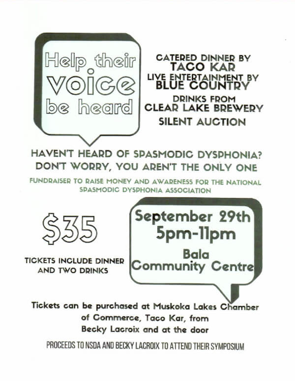 FUNDRAISER for National Spasmodic Dysphonia Association Sept. 29