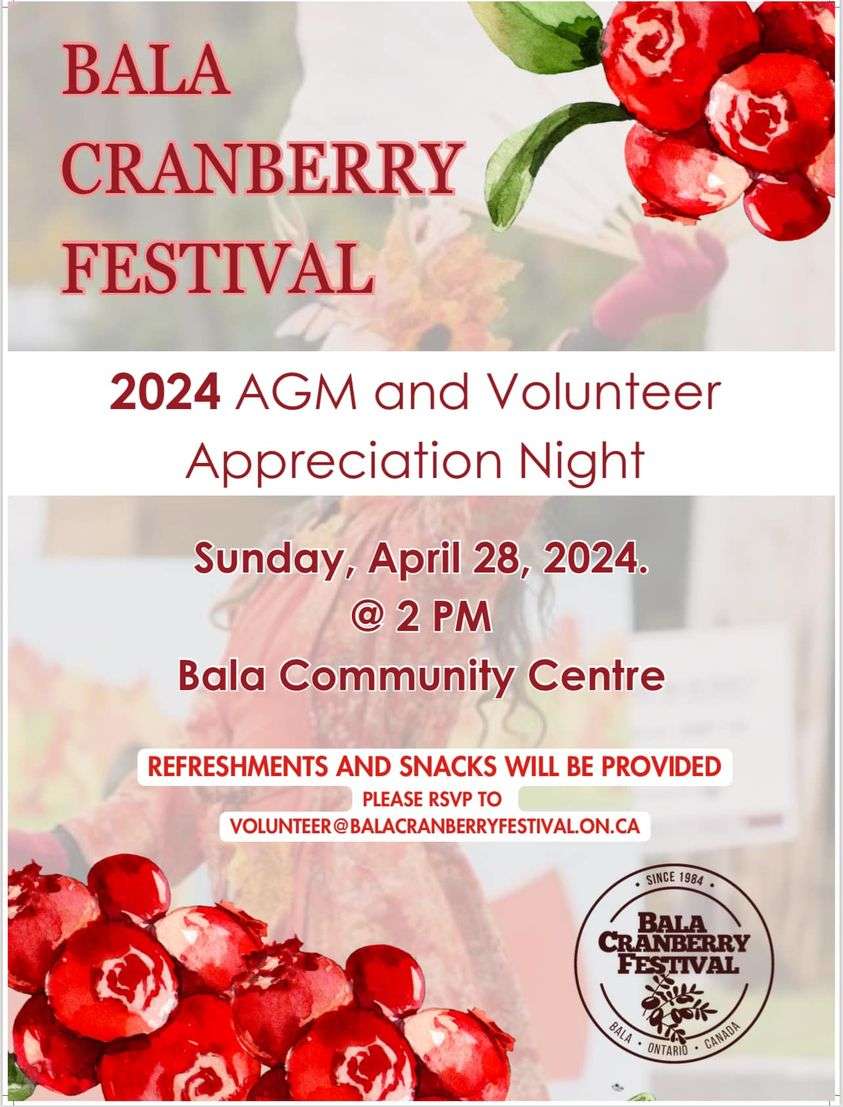 Join us for the Annual Bala Cranberry Festival AGM and Volunteer Appreciation Night