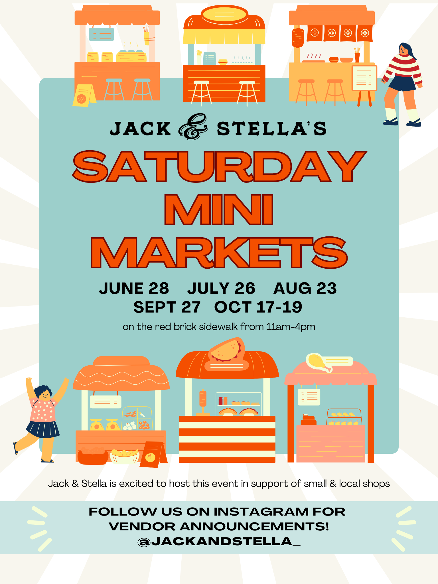 Come out to Jack & Stella’s and Support local and small shops during J&S’s Mini Markets. Enjoy vendors, drinks, and good vibes.