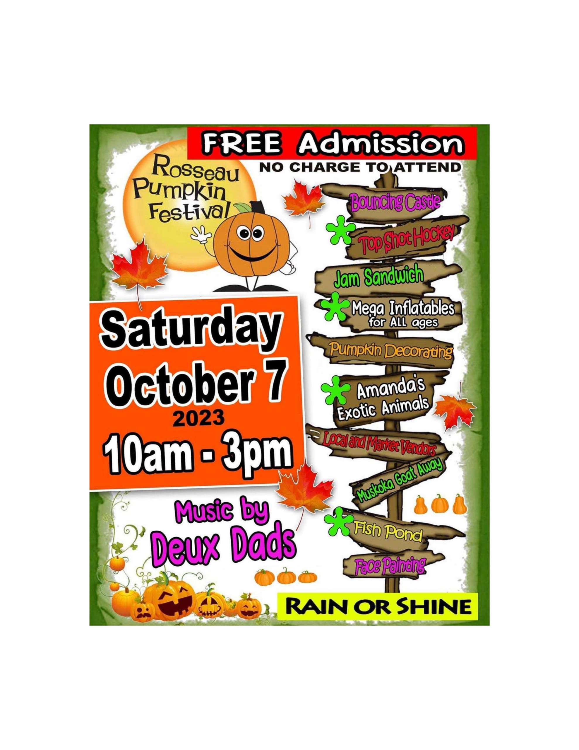 FREE Family Event is on Saturday Oct 7, 2023 10am 3pm on Victoria St in Rosseau Village Rain or Shine