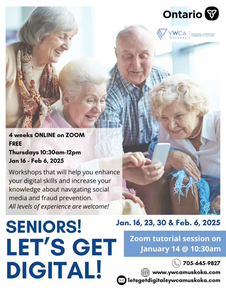 A program for seniors to help you be more safe online from YWCA. Starts Jan 16 (with optional Zoom training on Jan 14) and runs four weeks through to Feb 6, 2025.