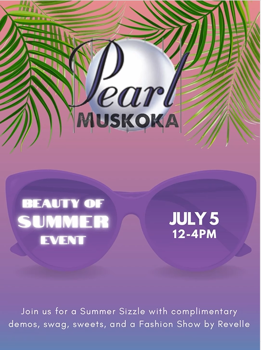 Come out July 5th to PearlMD Muskoka for a Summer Sizzle with Dr. Pearlman from 12-4pm! Enjoy snacks and sweets from The Pearl Muskoka, complimentary demos, a fashion show with Revelle, live art from Beckie Dileo, live music, and a special guest.