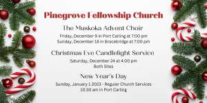 The Pinegrove Fellowship Church is hosting a Muskoka Advent Choir on Friday, December 9th at 7:00 pm at the Port Carling location.