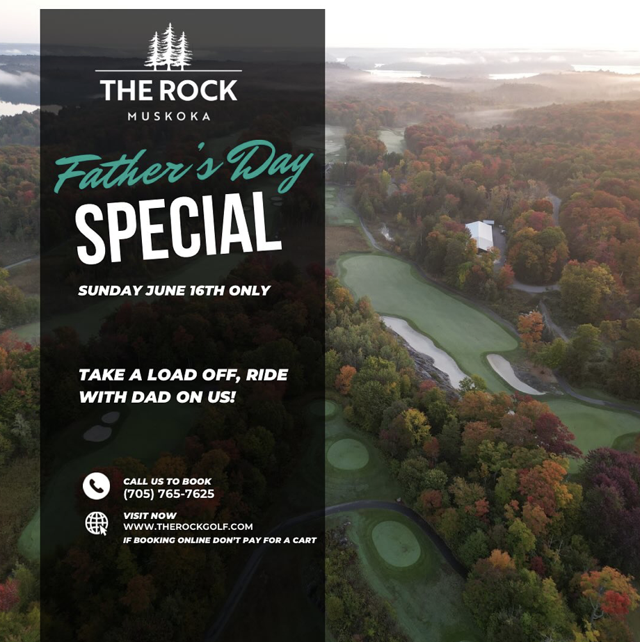 Happy Father’s Day! Tee off with The Rock and they’ll take care of your cart fee. Enjoy an stress-free round of golf and make some unforgettable memories!