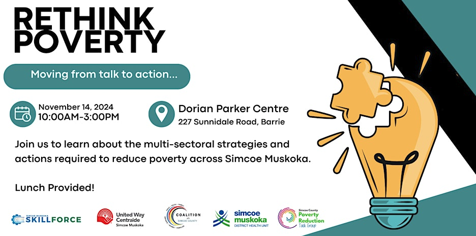 Dorian Parker Centre 227 Sunnidale Road, Barrie, Ontario, CanadaRethink Poverty is being planned in partnership with the Poverty Reduction Task Group, United Way Simcoe Muskoka, Simcoe Muskoka District Health Unit, Simcoe Muskoka Skillforce, and Child Youth & Family Services Coalition of Simcoe County. Who should attend: Members of Parliament and staff, Members of Provincial Parliament and staff, County of Simcoe, District of Muskoka, [...]