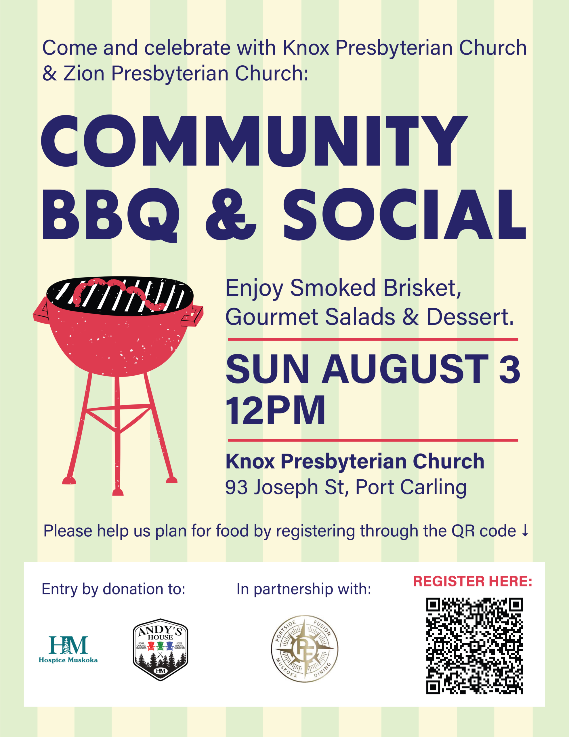 Community BBQ and Social Sunday August 3 @ Noon Knox and Zion will be celebrating their Anniversaries as a Joint Service at Knox at 10:30am on August 3. This is Jane's last Sunday with us and Rev. Seven Smith will be preaching. Because God has blessed us throughout the history of Knox and Zion, [...] |