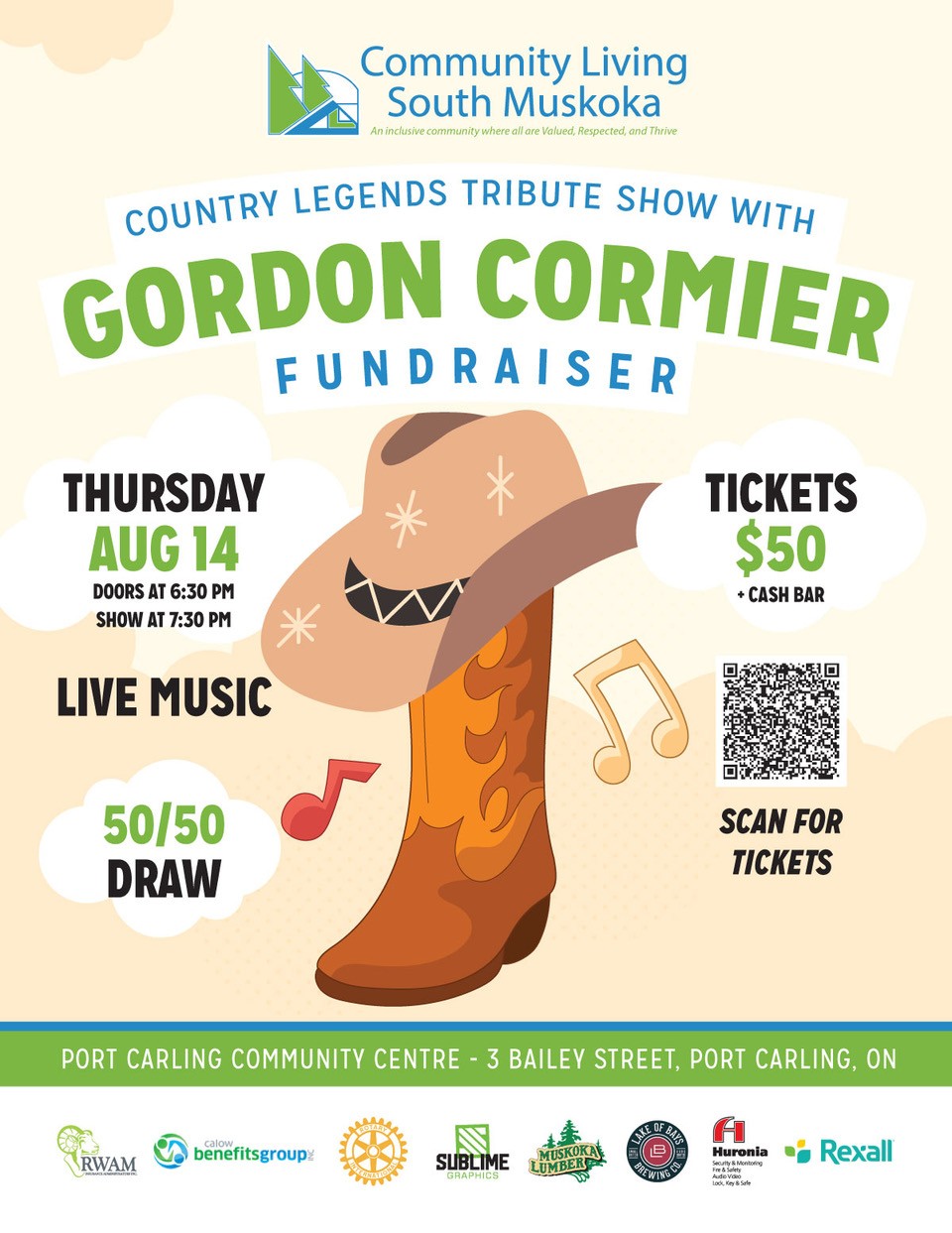 Community Living South Muskoka is happy to presentCountry Legends Tribute Show with Gordon Cormier at the Port Carling Community Centre. THU AUG 14th Doors @ 6:30PM Gordon Cormier will be performing country classics from George Jones, Charley Pride, Conway Twitty, Merle Haggard, and Johnny Cash...Gord also has Newfoundland songs, stories, jigs, and reels! As we [...]