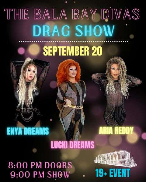 The Divas are BACK serving Muskoka glam at the iconic Bala Bay Inn! This endless summer vacation is guaranteed to be the hottest of the season Saturday, August 23rd The Bala Bay Inn, Bala, ON Doors at 8pm | Show at 9pm Ticket link BELOW 19+ event BALA BAY DIVASEnya Dreams Lucki DreamsAria Reddy